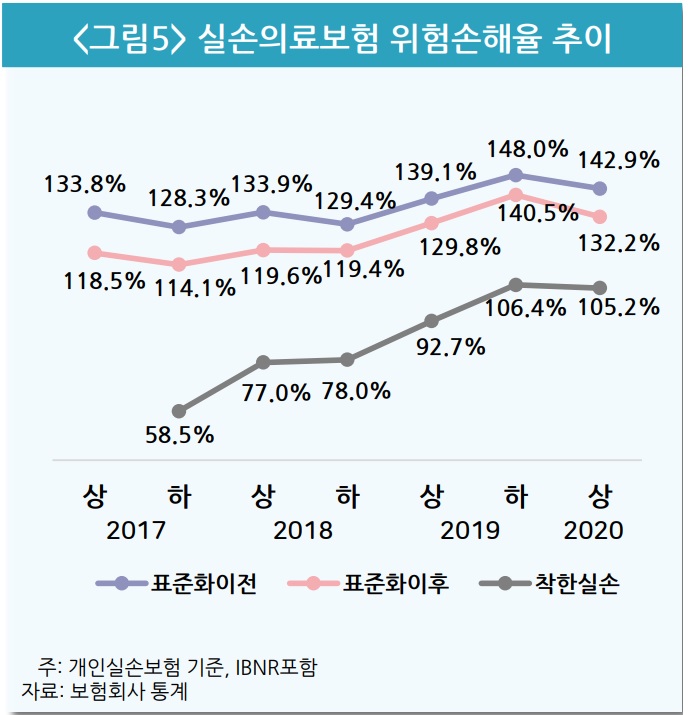 실손의료보험 위험손해율 현황(자료:보험연구원)