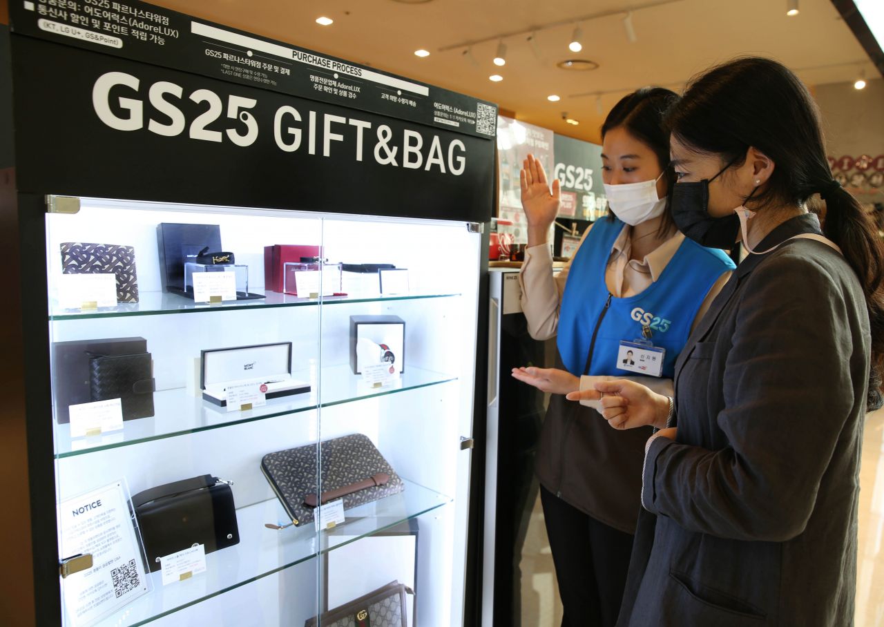 편의점, 명품 상시 판매…애플 '에어팟 프로' 프로모션29일 관련 업계에 따르면 GS리테일이 운영하는 편의점 GS25는 명품 병행수입 및 해외직배송 전문업체 어도어럭스와 손잡고 서울시 강남구 삼성동에 위치한 'GS25 파르나스타워점'에 명품 판매대를 도입한다. 명절 시즌 선물세트나 카탈로그 주문방식이 아닌 매장 상시 판매를 시작한 것은 편의점업계 최초다.