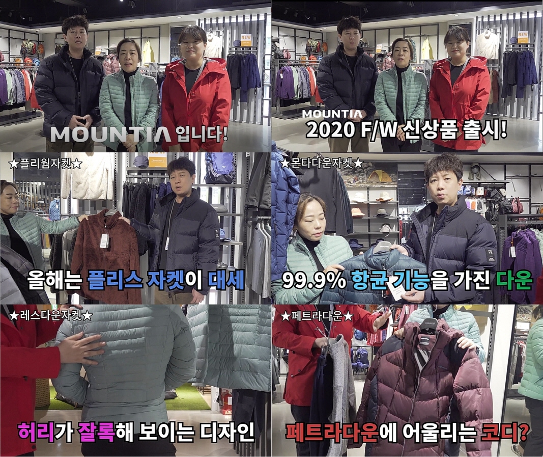 30일 관련 업계에 따르면 아웃도어 브랜드 마운티아는 최근 ‘마운티아 MD가 제안하는 마운티아 FW 스타일링’ 영상 3편을 공개했다. 마운티아 상품기획자들이 소비자들에게 낯설고 어려운 아웃도어 기능성 소재와 기술을 비롯해 추천 제품의 특징을 이해하기 쉽게 설명해 마치 퍼스널쇼퍼를 마주하고 있는 듯한 느낌을 준다.