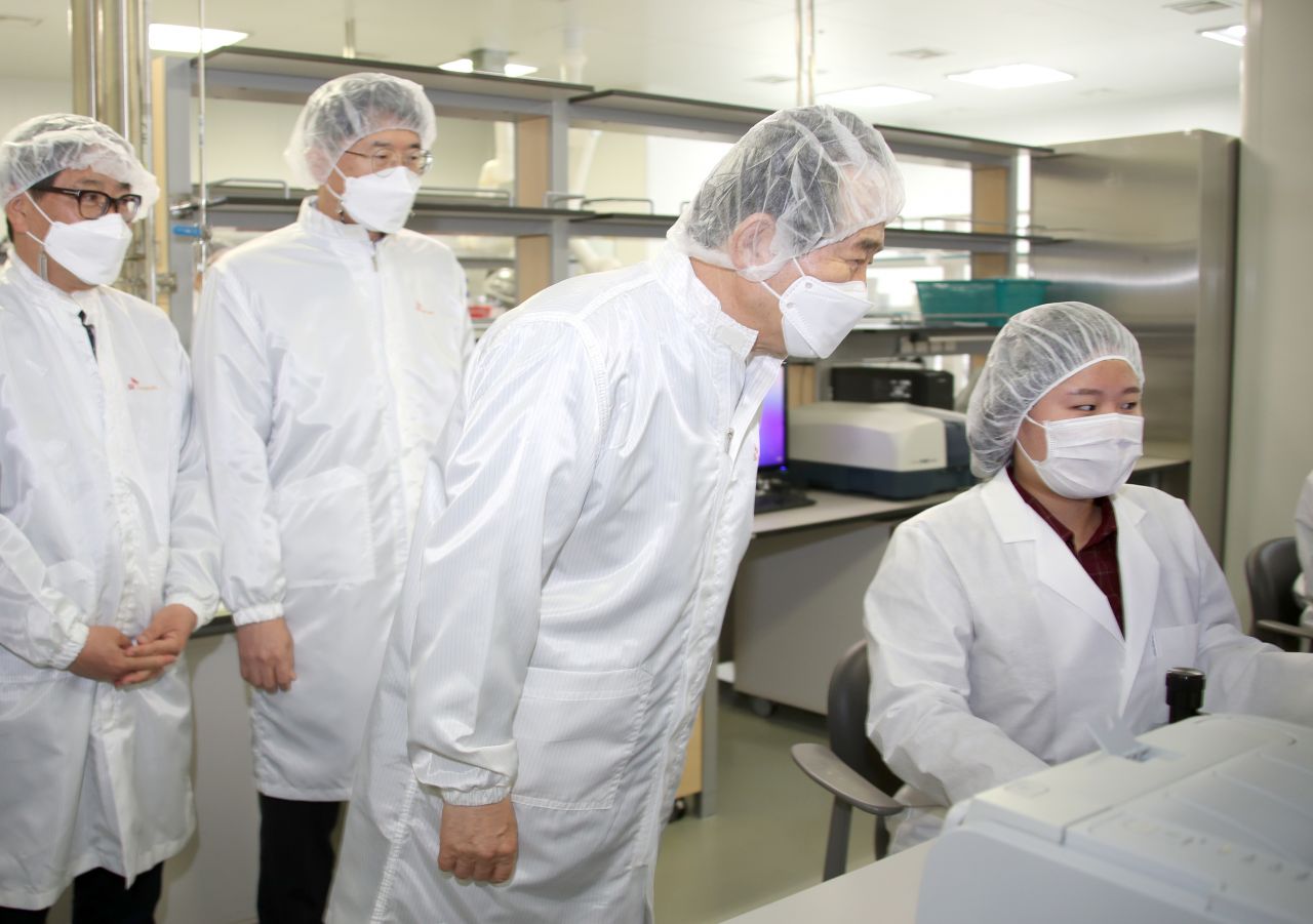 이어 SK바이오사이언스 L-HOUSE를 방문해 개발·생산 시설을 점검하고 백신 개발에 전념하는 임직원들에게 감사의 뜻을 표했다.