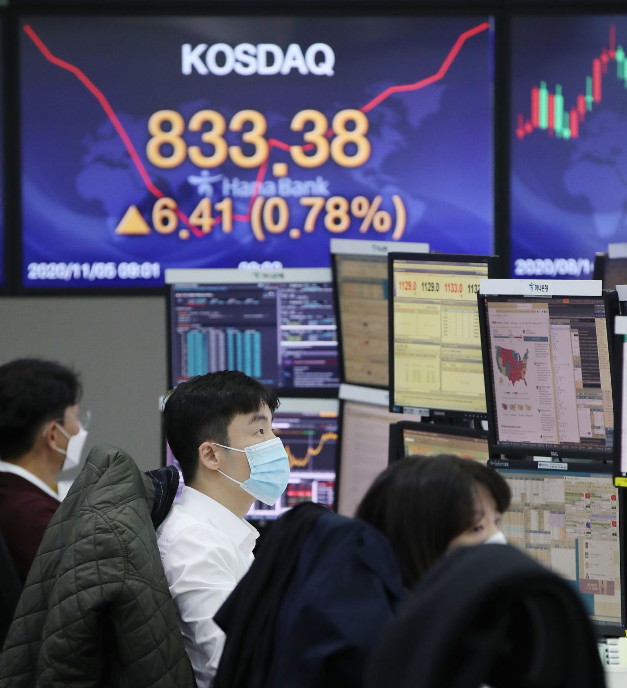 [아시아경제 김은별 기자] 조 바이든 미국 민주당 후보가 선거인단 264명을 확보하며 대선 승리에 바짝 다가서자 국내 금융시장에선 주식, 채권, 원화가치가 일제히 상승세를 나타내고 있다.