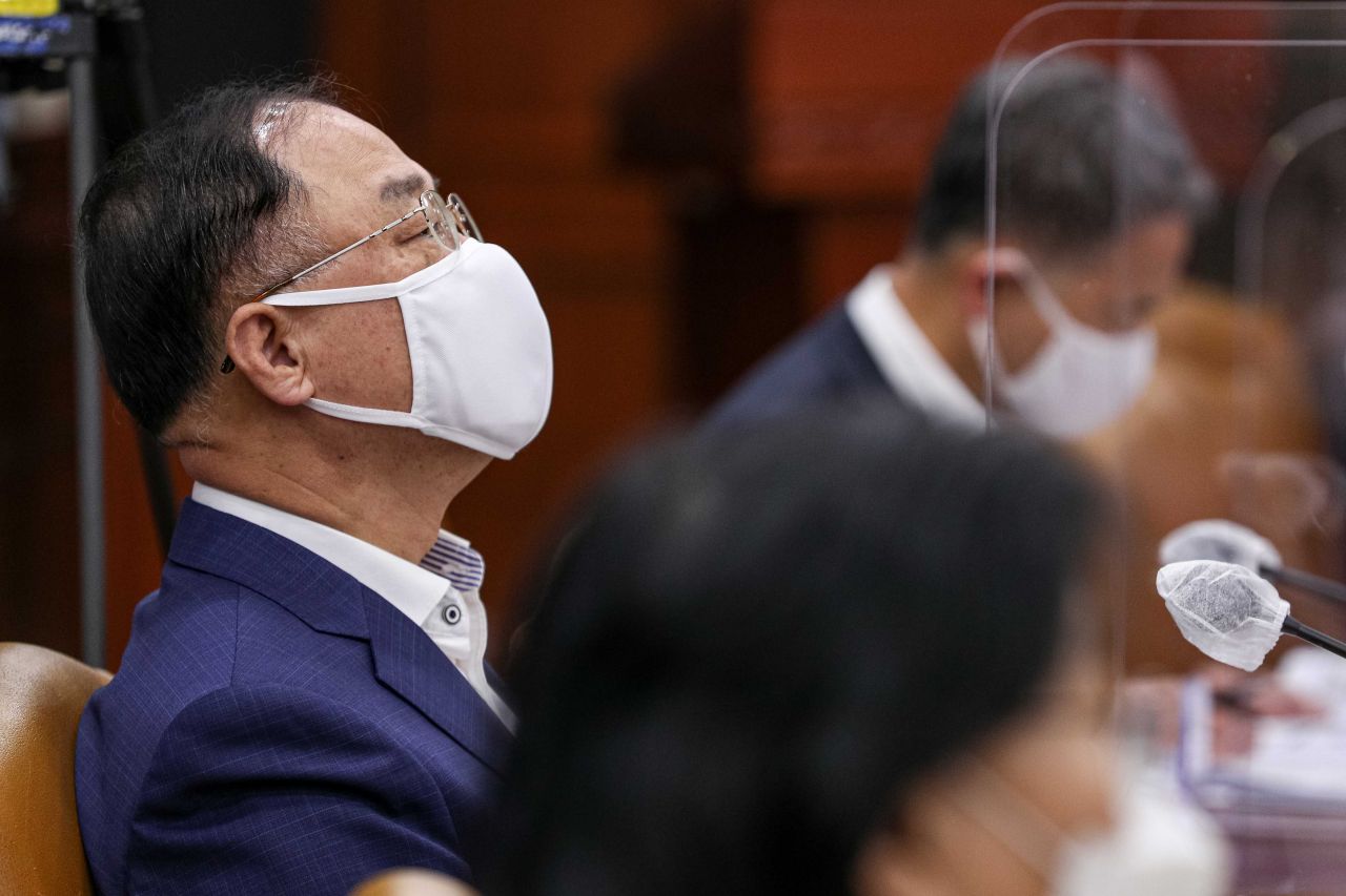 홍남기 경제부총리 겸 기획재정부 장관이 29일 서울 종로구 정부서울청사에서 열린 국정현안조정회의에 참석하고 있다./강진형 기자aymsdream@