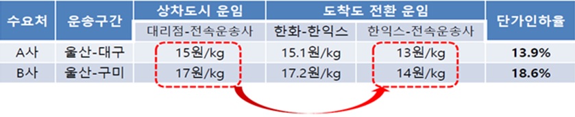 '도착도 전환' 후 전속운송사 단가 인하 사례.(자료=공정거래위원회)